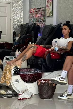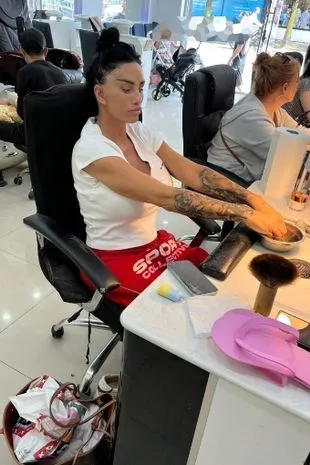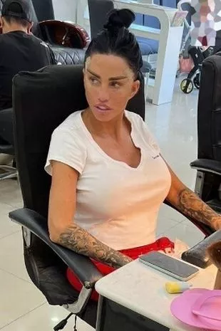 这位46岁的前《魅力》模特在周末去美容院时展示了她最新整容手术的结果。周六,有人看到凯蒂在布莱顿的美容院修指甲和修脚。