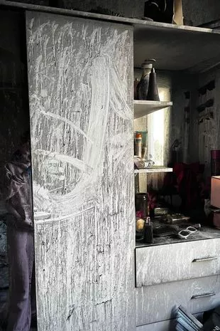 蒂亚回忆道:“整个客厅都被烧毁了。天花板的一部分掉下来了。部分石膏板着火了。太可怕了。烟雾造成的损害是可怕的。什么也救不了。”