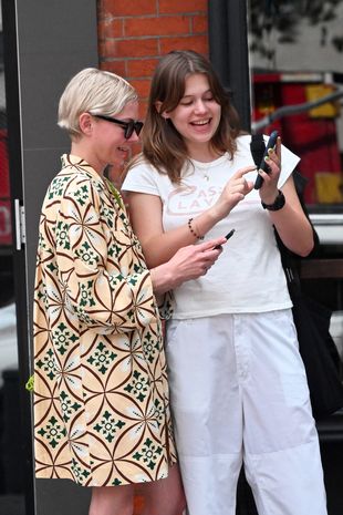 这位43岁的女演员和她的女儿看起来很忙,因为他们被发现在纽约四处走动。这位少年穿着一件复古的白色卡修斯·克莱t恤,宽松的白色裤子和一双黑色阿迪达斯运动鞋,与此同时,米歇尔穿着一件黄色的有图案的连衣裙,棕色凉鞋,戴着墨镜。