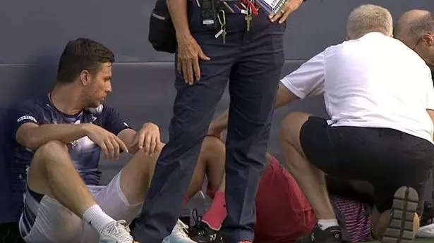 事件发生在他们比赛的第五局,比分是6-7、6-2、7-5、5-7和0-1。西冈似乎抓住了自己的左腿和胳膊,然后倒在了地上,官员们赶紧去救他。