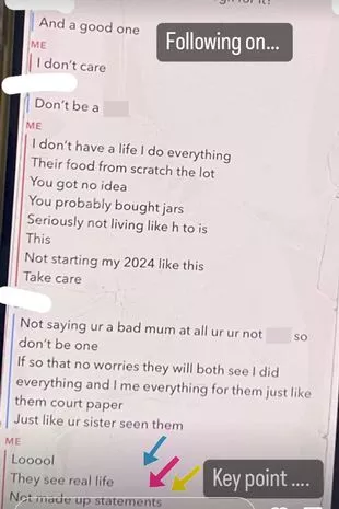 这位《名人约会》明星是这位曼城球员六个孩子中的两个孩子的母亲,她今天在Instagram上分享了一系列截图,这些截图揭示了一些说法,这些说法与凯尔从未与她的孩子有过情感联系的说法不符。