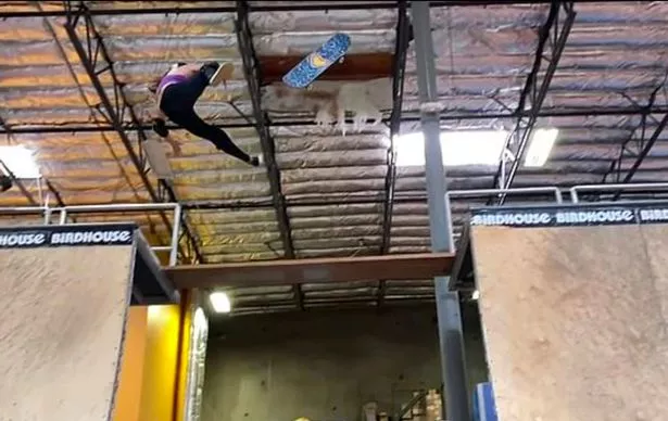 布朗在一个高坡顶上从滑板上飞了下来,头朝下落在坚硬的地面上(Image:skybrown/INSTAGRAM)