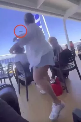 在希腊一艘游轮上拍摄的一段视频中,可以看到这名女子走近一对正在享受假期的夫妇。