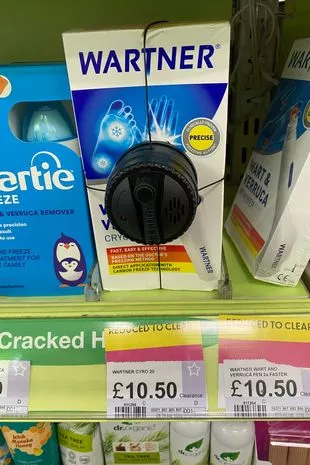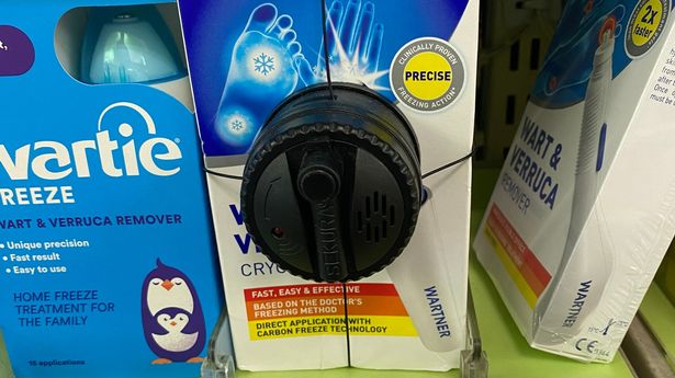 为《星期日镜报》工作的检查人员在伦敦南部克拉彭的一家药店巨头的分店里发现了这种令人尴尬的健康辅助设备。沃特纳公司推出了一套价值10.50英镑的去除疣和疣的套装,该套装使用碳冷冻技术去除难看的脚上的瑕疵,并与科技公司Sekura Global的安全研究人员制造的防盗警报装置捆绑在一起。