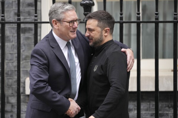 伦敦(美联社)——周四,乌克兰总统弗拉基米尔·泽伦斯基抵达伦敦唐宁街10号,与英国和北约领导人就他对俄罗斯的战争进行会谈。