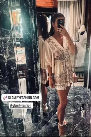 尽管遇到了挫折,丽贝卡还是面带微笑地和家人度过了一次奢华的假期。她和37岁的足球运动员杰米一起享受了没有五个孩子陪伴的假期。丽贝卡穿着一件白色高跟鞋的丝质迷你裙,站在穿着白色裤子和黑色衬衫的杰米旁边。