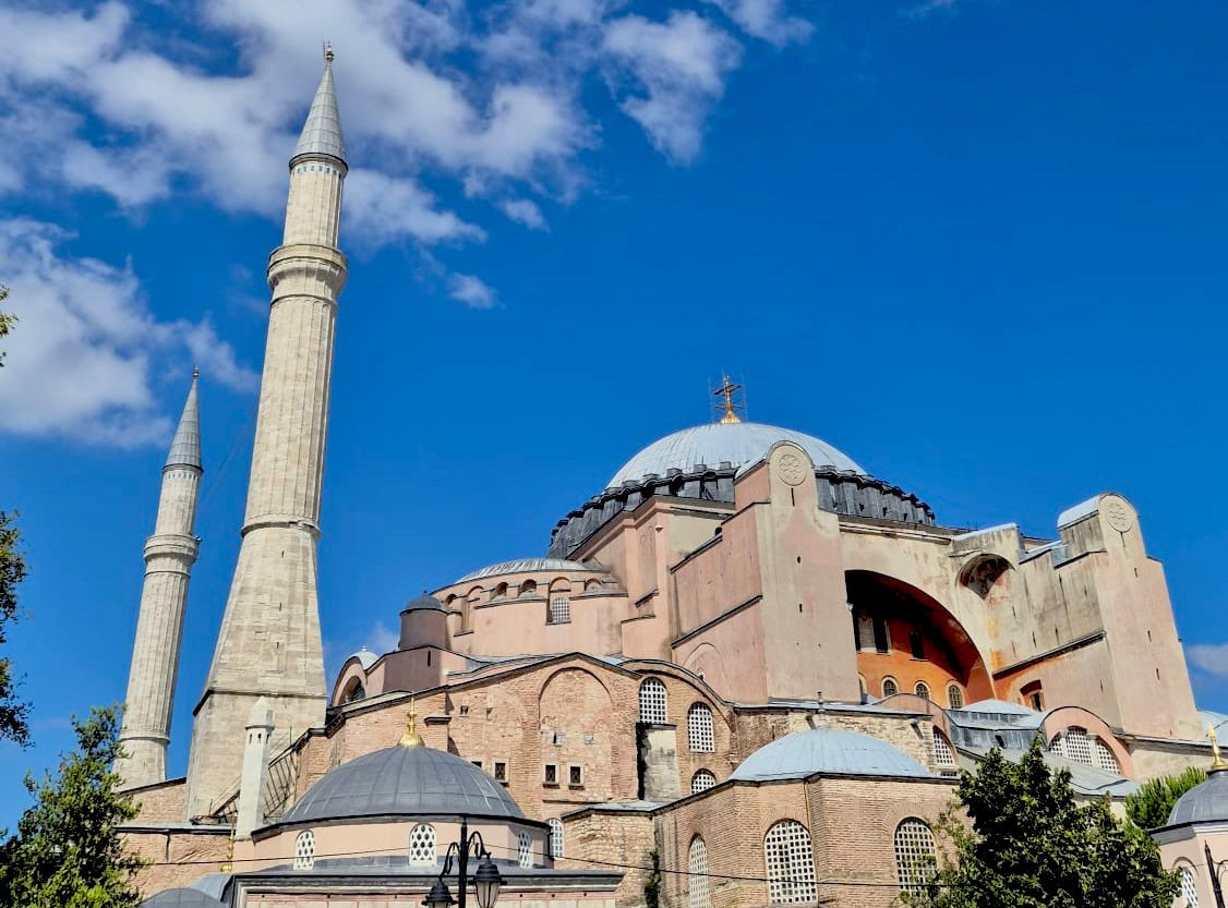 蓝色清真寺和圣索菲亚大教堂就像两个住在院子对面的老朋友,是我们的第一站。现在,一个小提示:如果你碰巧在祈祷时间到达,门在你身上关上了,不要担心。拿出你打包好的头巾,走进去,加入jam。你不仅可以看到令人惊叹的内部,还可以省下入场费。小贴士:不要穿昂贵的鞋子,因为你在探索的时候不得不把它们放在无人看管的地方。