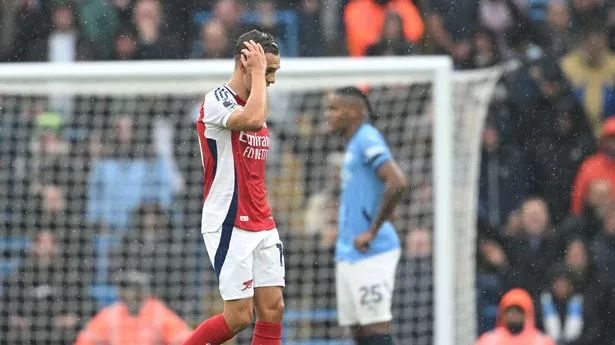 在阿森纳与曼城的惊心动魄的比赛中,特罗萨德因将球踢飞被红牌罚下。