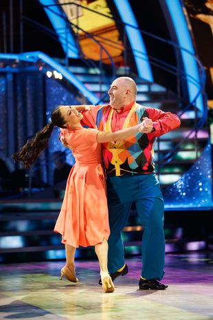 韦恩和卡蒂亚尴尬的表情是当晚的喜剧时刻。另一位评论道。两人随着电灯乐团的《蓝天先生》跳了一段轻快的快步舞,随后两人为“内部玩笑”道歉。威尔士歌剧演唱家韦恩结束时,头上留下了一团蛋黄酱,琼斯把它洗掉了。评委Anton Du Beke说:“当你跳舞的时候,这是一场可爱的表演”,而Motsi Mabuse则称它“精致”。琼斯挽着埃文斯的手臂,两人共得33分。