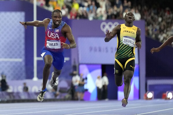 法国圣德尼(美联社)——周日,诺亚·莱尔斯以0.005秒的优势赢得了奥运会100米比赛,在一场极其接近的冲刺结束后,等待了大约30秒,他才发现自己以微弱优势击败了牙买加的基沙恩·汤普森。