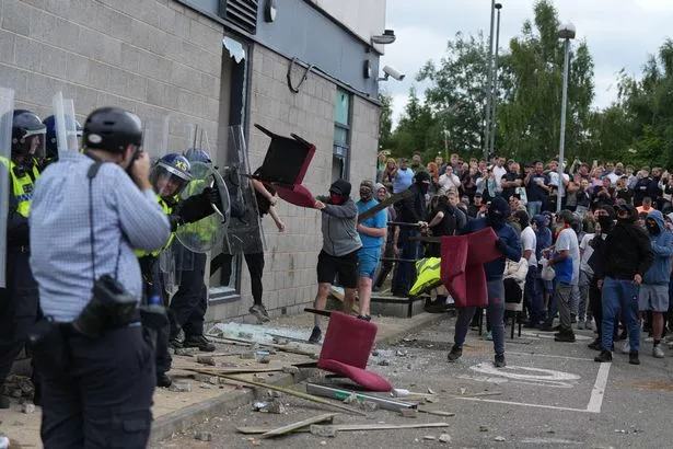 早些时候,他们在罗瑟勒姆的快捷假日酒店(Holiday Inn Express)将几个燃烧着的大垃圾箱撞向消防出口。警方不得不使用自己的小型灭火器来控制火势,但在客人们从上面观看的情况下,火势在可怕的半小时内没有受到影响。