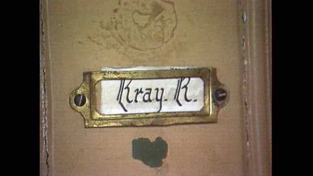 罗尼·克雷,他的名字写在牢房的门上,被关在布罗德莫精神病院