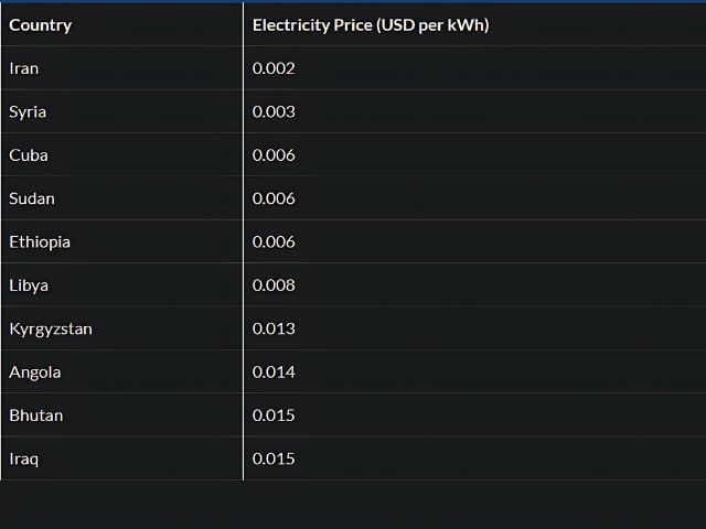 伊朗-石油和天然气资源丰富的伊朗提供世界上最便宜的电力,每千瓦时(kWh)为0.002美元。能源部门基本上由国家控制,允许政府在不受市场影响的情况下设定价格。政府还为电力提供大量补贴。最近,伊朗将其国内生产总值的19%用于能源部门。