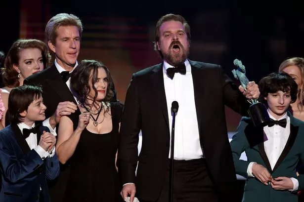 《怪奇物语》的薇诺娜·赖德和大卫·哈伯获得剧情类最佳集体表演奖(图片:盖蒂图片社)