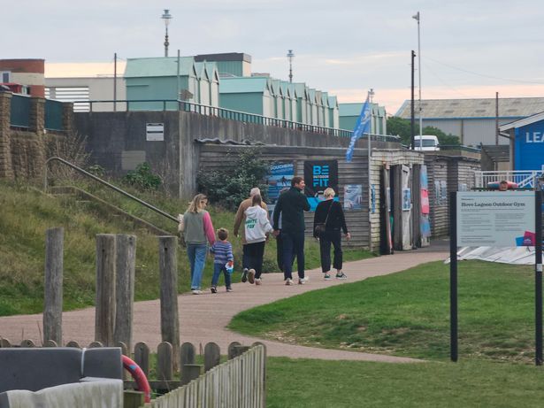 Zoe Ball和她的团队沿着海滨散步(图片:/ SWNS)
