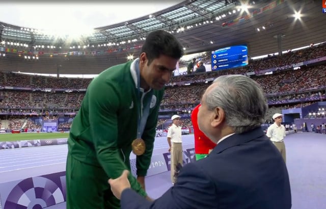 巴基斯坦选手阿尔沙德·纳迪姆(Arshad Nadeem)在昨晚的奥运会上创造了历史,周五在巴黎田径体育场举行的特别仪式上获得了一枚金牌。