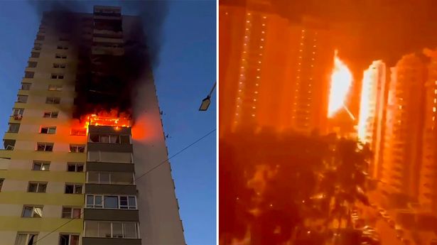 莫斯科地区州长安德烈•沃罗比约夫(Andrey Vorobyov)在一份电报中表示,一架无人机摧毁了两座高层建筑,一名46岁的女子在袭击中丧生。图片显示,在克里姆林宫以南仅30英里的拉门斯科耶区,有几栋大楼着火,沃罗约夫补充说,还有几人受伤。