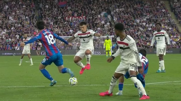 在曼联0-0战平水晶宫的比赛中,利桑德罗·马丁内斯冒着被红牌罚下的危险,用两脚跳起来与神田大一抢球