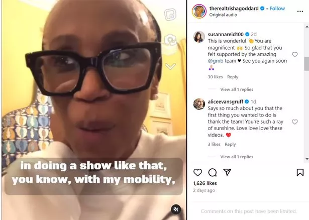 特里莎说,GMB团队“非常理解”(Image:@therealtrishagoddard/Instagram)