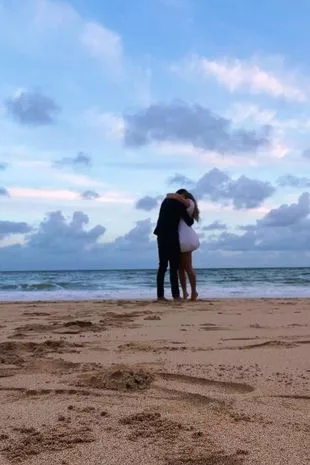亚当·科拉德在海滩上向她求婚(图片来源:Instagram / laurawoodsy)
