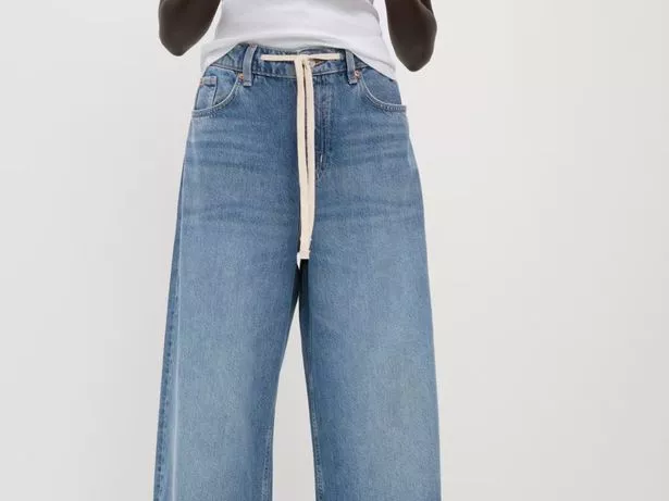 这条售价39.50英镑的牛仔裤的特点是系带和休闲宽松的阔腿