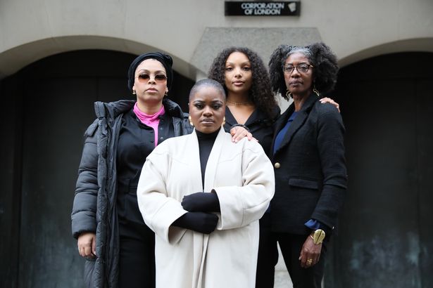 Temi Mwale, Sheeda Queen, Kayza Rose和Marcia Rigg是卡巴家族的朋友,他们昨天在法庭外(图片:盖蒂图片社)