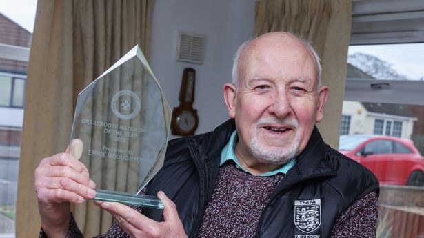 林肯郡足球协会首席执行官尼克·汉森表示敬意,称厄尼是该地区“足球的基石”。厄尼已经当了53年裁判了。在此期间,他执法了15场杯赛决赛,16场半决赛和数千场联赛。