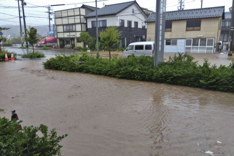 周六上午,和岛的每小时降雨量达到创纪录的121毫米(4.8英寸),而邻近的Suzu每小时降雨量为84.5毫米,也是历史最高水平。