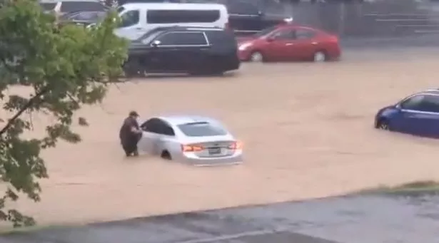 一些参观多莱坞的游客看到他们的车辆被不断上涨的洪水淹没(图片:JeMiale McKinney / X)