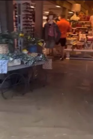 另一段视频显示,公园里的一家礼品店被洪水淹没,大门大开。据《美国镜报》报道,游客很难离开公园,因为有报道称汽车被淹没了。