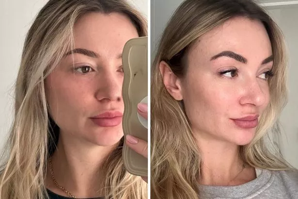 左:佐伊在使用COSRX的蜗牛黏液霜之前,右:每天使用两周后(图片:佐伊•克里普斯)