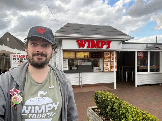 他说,在东萨福克郡费利克斯托的一家Wimpy店,员工们为他的筹款活动捐款,并在广播中听到他的旅行后,让他觉得自己是个“超级明星”。在伦敦东南部的贝克斯利希斯,他还欣赏了这家连锁店最古老的餐厅,他形容这家餐厅“非常怀旧,非常酷”。