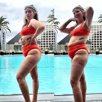 莎拉很自豪地在网上穿着比基尼和露脐上衣展示她的曲线。她的肚子上布满了妊娠纹,大腿不停地摆动,但她喜欢自己不断变化的身体。