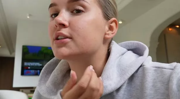 莫莉·梅指着她皮肤上的斑点和皮疹(图片:MOLLYMAE / YOUTUBE)
