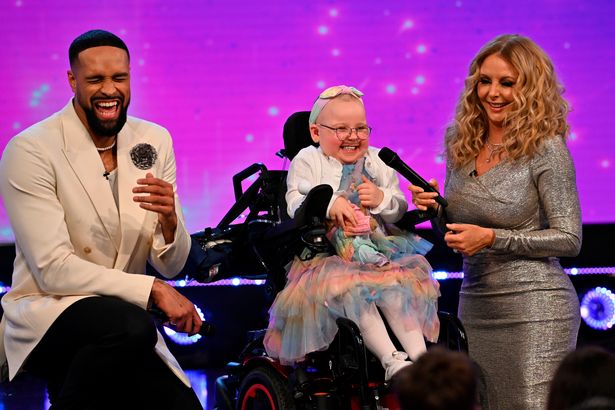 Carol Vorderman和Ashley Banjo与Florrie Bark在英国骄傲奖上(图片来源:Andy Stenning/Daily Mirror)