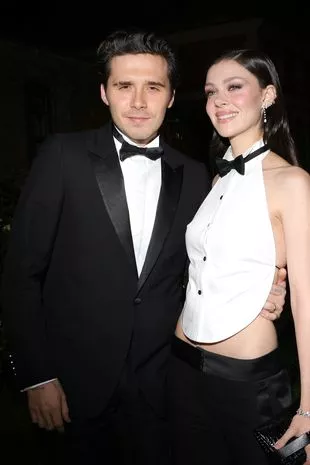 布鲁克林·贝克汉姆和尼古拉·佩尔茨在维多利亚·贝克汉姆2025年春季巴黎时装周上(图片来源:WWD通过Getty Images)