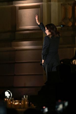 维多利亚·贝克汉姆在她的系列秀结束时向观众致意(图片来源:法新社/盖蒂图片社)