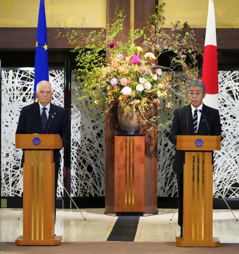 博雷尔在社交媒体平台X上表示:“我们重申了加强欧盟与日本在安全和防务方面合作的必要性,包括在日益增长的地区和全球安全挑战中加强海上安全、网络和混合威胁方面的合作。”