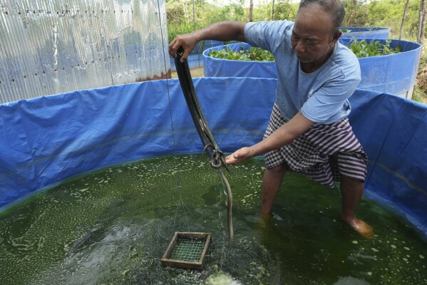 KAMPONG PHLUK,柬埔寨(美联社)——Em Phat, 53岁,研究他的鳗鱼池的强度就像一个拿自己的生计赌博的人。
