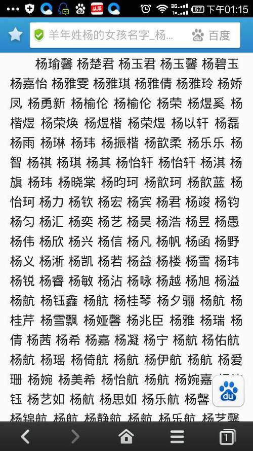 4. 喜好和特长:如果杨姓的人有特别的喜好或者擅长某个领域,可以通过名字来体现这个特点。比如,喜欢音乐的可以选取与音乐相关的字,喜欢运动的可以选择带有动感的字等。