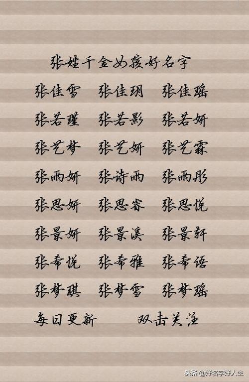给3个姓张的女宝宝取名要注意五行匀称、寓意美好、别人的名字不要直接照搬等原则,结合家族文化和父母的喜好,给孩子三个独特的、美好的名字,愿这三个宝宝在未来的成长道路上都能够健康、快乐地成长。