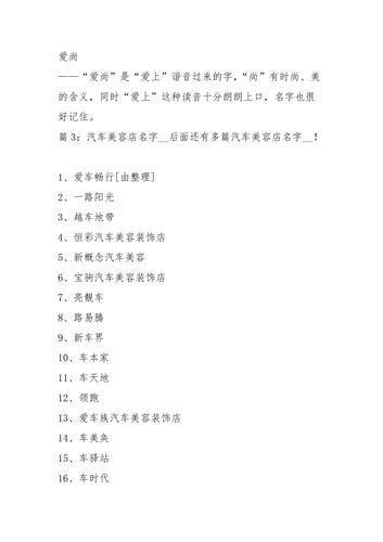 考虑您未来汽车公司的业务范围,是否只是销售汽车,还是包括维修、配件销售等服务?您的公司名称应该能够反映出这些方面,以便客户能够清楚地了解您的业务。