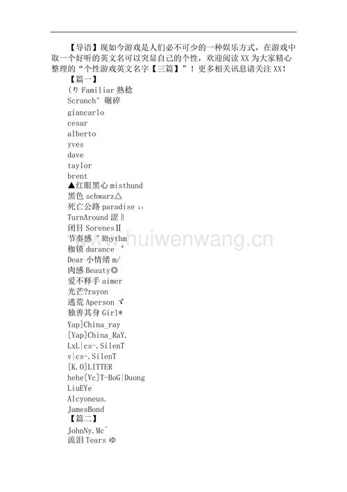 2. 个性化和独特性:确保你的名字能够凸显你的个性和风格,与众不同。