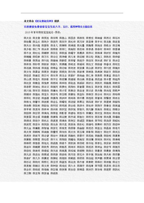 给孩子起名字是一件非常重要的事情,名字不仅代表着孩子的身份,还可能影响到孩子的性格和命运。以下是一些精心挑选的陈姓女孩名字,希望能给您一些灵感和启发。