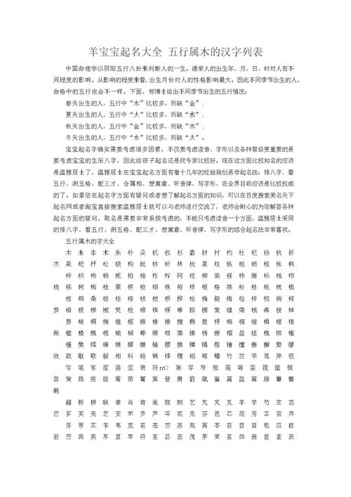 以上是根据五行属木的特性与命名美学为您提供的一些建议,希望对您选择宝宝的名字有所帮助。建议在选择名字时,也可以结合家族传统、寓意以及音韵等因素,打造一个个性独特且有意义的名字。祝宝宝健康成长!