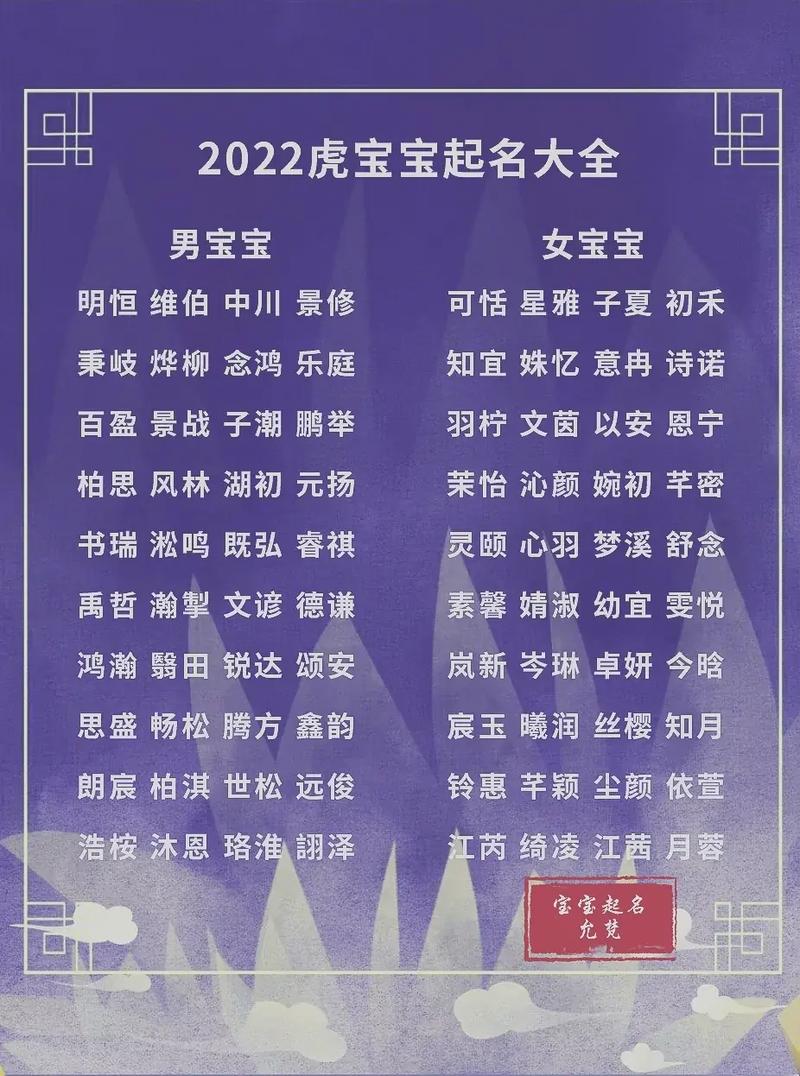 给宝宝起名字是每个家长非常重要的任务之一。虎是中国人心目中的吉祥动物之一,具有强大的力量和勇气的象征。根据姓胡的特点和虎的寓意,我为您准备了一些姓胡的虎女宝宝起名的大全。