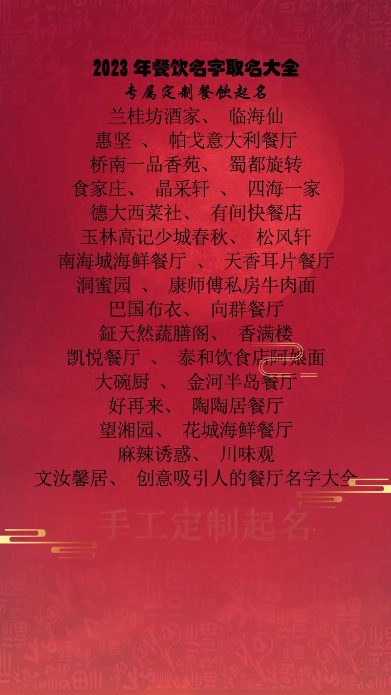确保名字能够体现出你餐馆的独特个性和品牌定位,根据餐厅装修、菜品类型来确定合适的名字。
