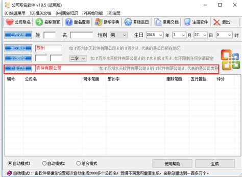 起名一直是创业过程中的一项重要任务,因为一个好的公司名字不仅仅是一个标识,更是公司形象和品牌的一部分。使用公司起名软件注册机可以帮助您在短时间内生成各种可能的名称,但选择正确的工具至关重要。下面是您在选择公司起名软件注册机时应考虑的几个关键因素: