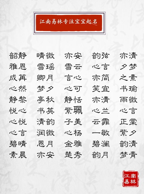 一个名字的发音是否优美也很重要,可以从名字的音韵美、谐音等方面考虑。4.